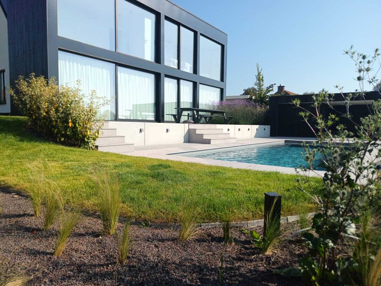 Dit strakke monoblock zwembad past perfect bij deze moderne villa en zorgt voor een luxe en ontspannen sfeer. De lichte tegels en het heldere water maken het helemaal af, ideaal voor een verkoelende duik. Doordat het zwembad mooi in het landschap is geïntegreerd, blijft het uitzicht behouden, wat zorgt voor een open en ruimtelijk gevoel. Een perfecte plek om te genieten van het buitenleven en helemaal tot rust te komen!